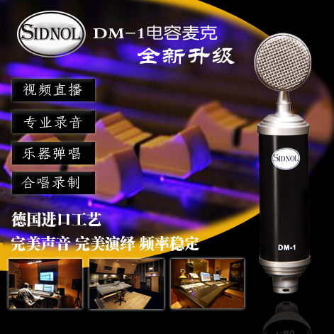 Auf den Sidnol DM-1 Kondensatormikrofon wird die in Vakuum Platinum beschichtete Polyesterfolie angewandt, deren Durchmesser ein Zoll ist und Membrandicke 6 mm ist. Das Folie-Set wird an der schmalen Stütze fixiert, die mit dem Mikrofon verbindet ist. Nach diesem professionellen Design können wir den getarnten Effekt von den hochfrequenten Schallwellen aus dem Weizenkörper reduzieren. Die neueste deutsche Halbleiter-Technologie wird für die Schaltung verwendet. Die Impedanz ist niedrig, was den Klangfeldbereich des Mikrofons und ohne Verzerrung bestimmt. DM-1 wird das doppelseitige Motherboard-Design genutzt. 48V Phantomspeisung und Drei-Kern-Audiokabel haben die unterschiedlichen Bedürfnisse der Mehrheit der Musikliebhaber und Moderatoren gedeckt.